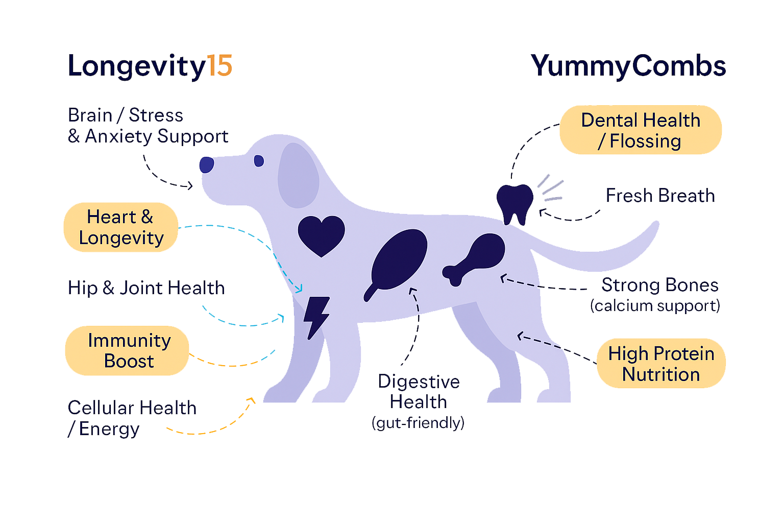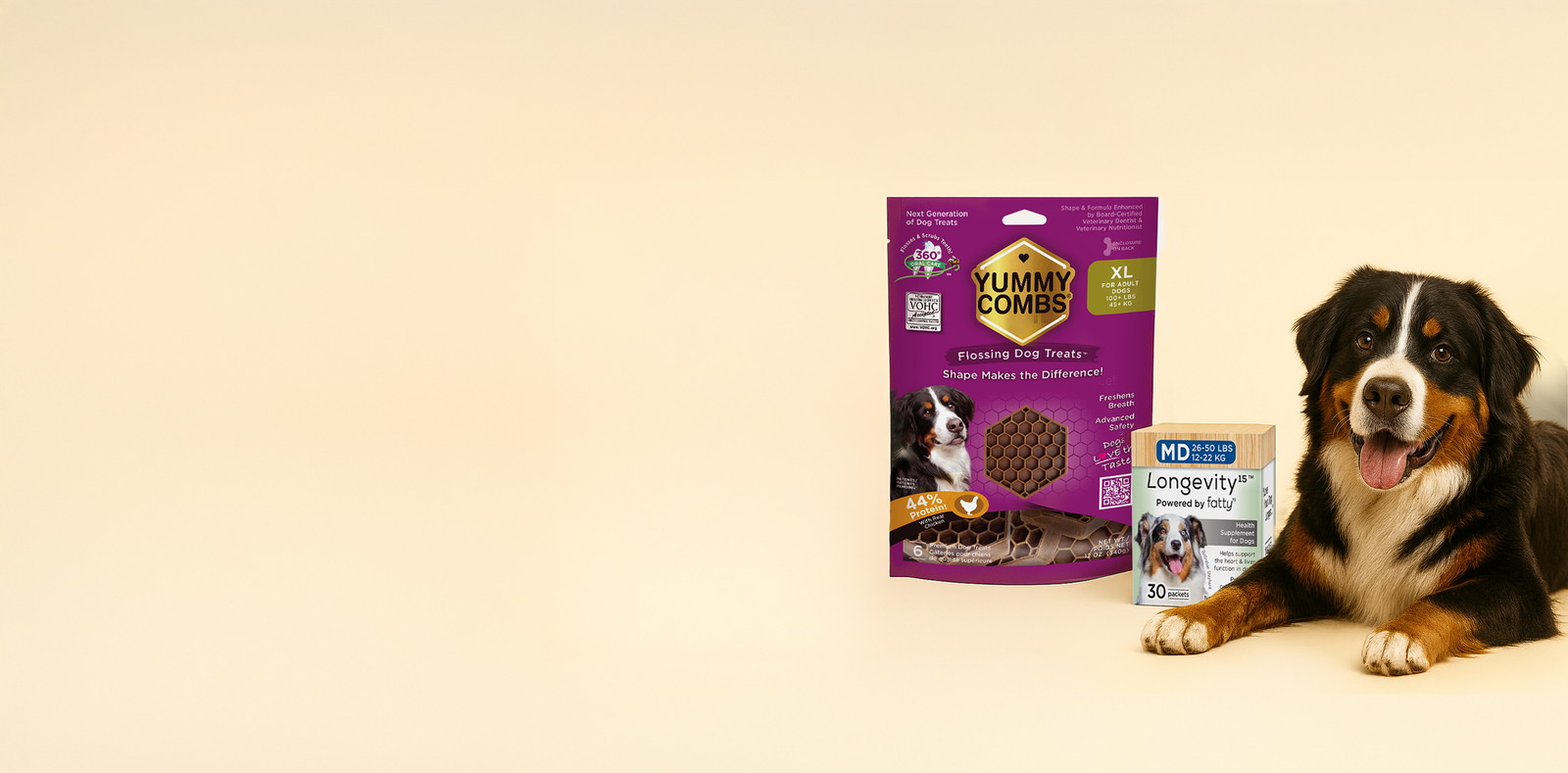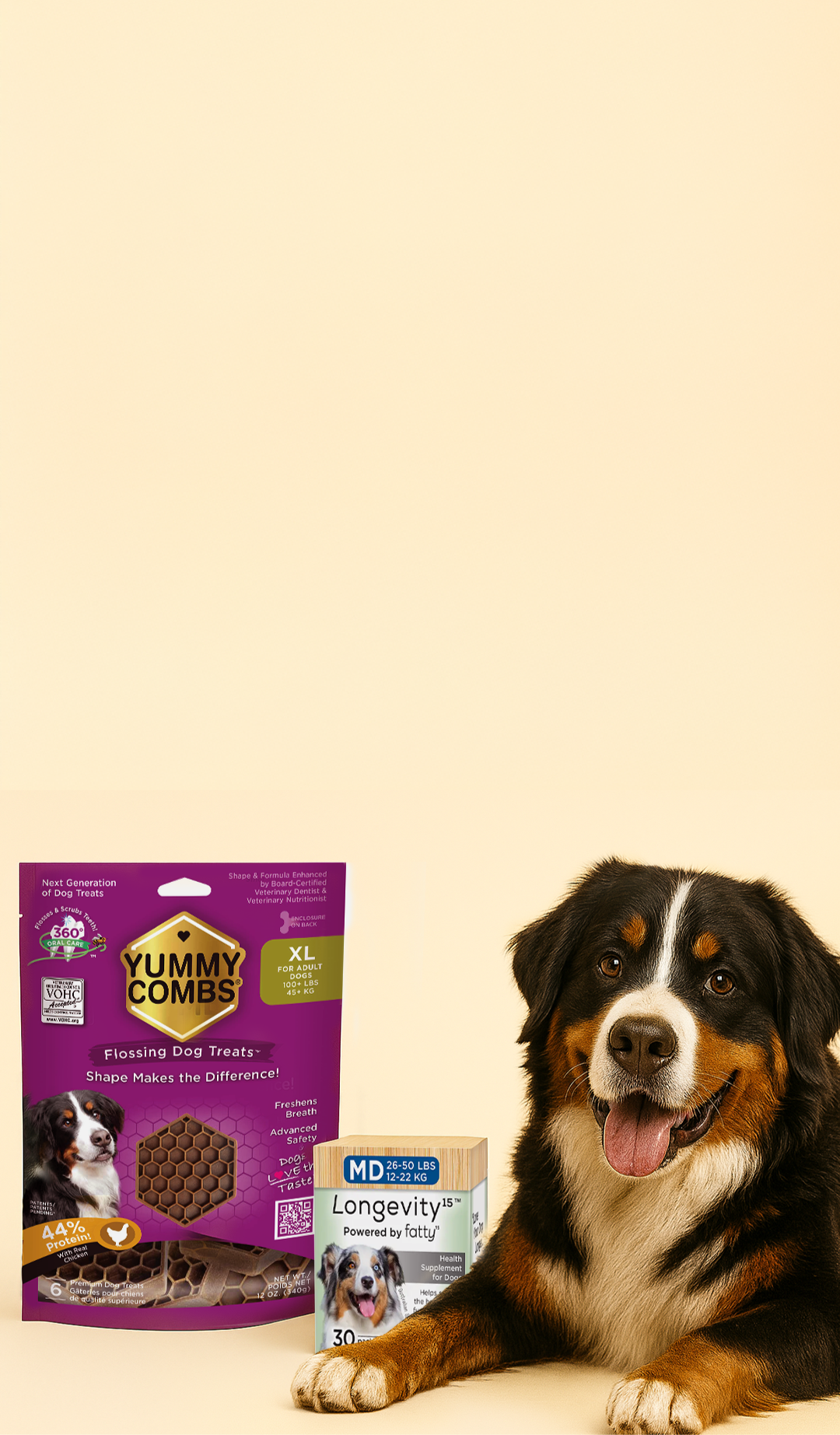 Get your dog started on Longevity15™, and we’ll send you a FREE Yummy Combs mini pack to support their dental health. Total-body wellness starts now.
