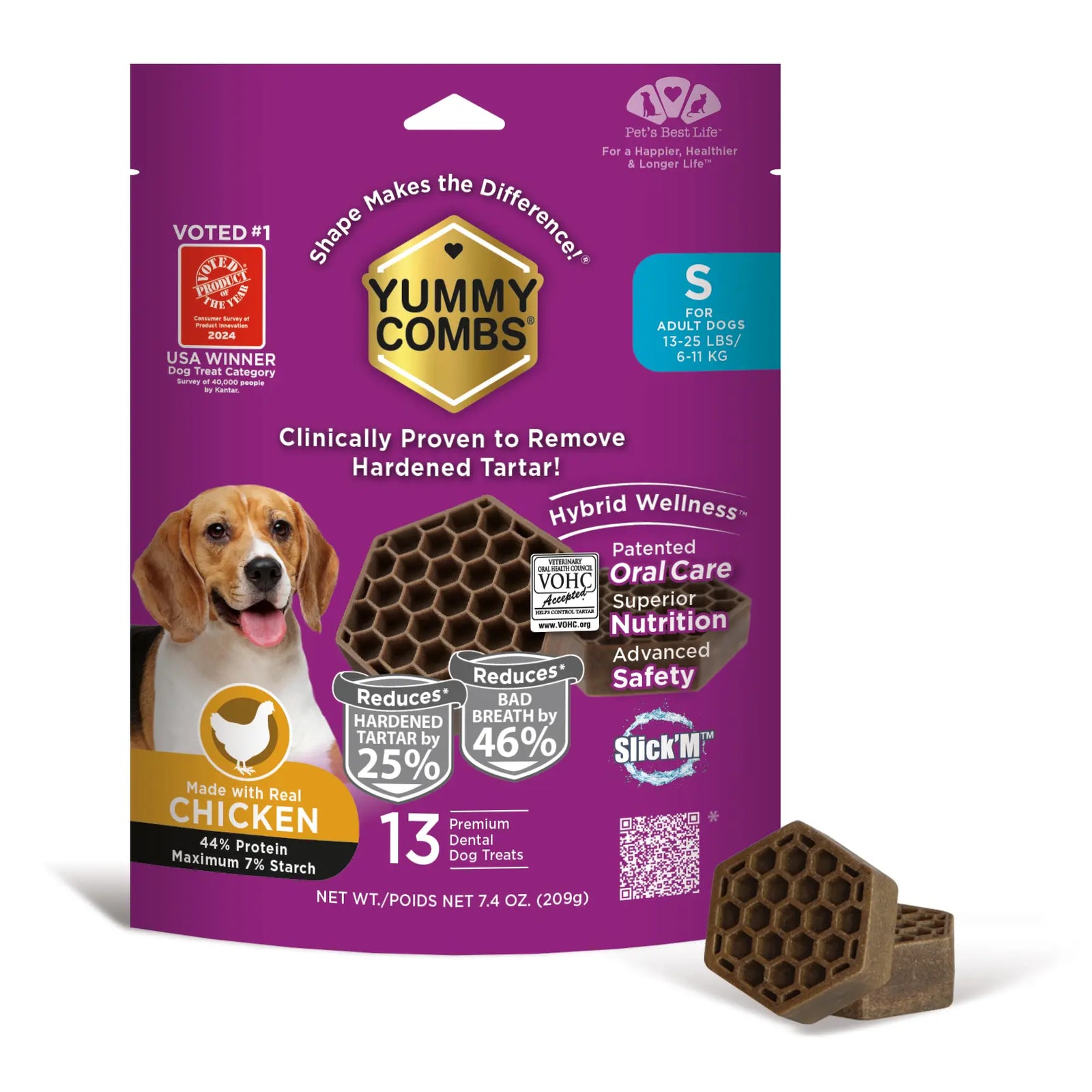 Yummy Combs is the world’s first, and only science-backed, patented, award-winning dental treat that safely removes hardened tartar. Yummy Combs with its superior nutrition is complete and balanced, Grain Free – and Gluten Free.